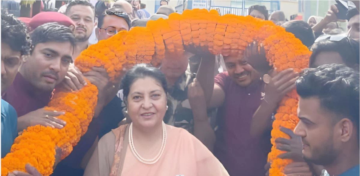 पूर्वराष्ट्रपति भण्डारीको मधेश प्रदेशमा भब्य इन्ट्री, ५१ किलोको मालासहित स्वागत सिमरामा स्वागत