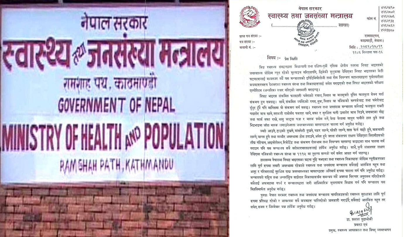 नेपालमा हालसम्म निपाह भाइरसका घटना पुष्टि भएको छैनः स्वास्थ्य मन्त्रालय