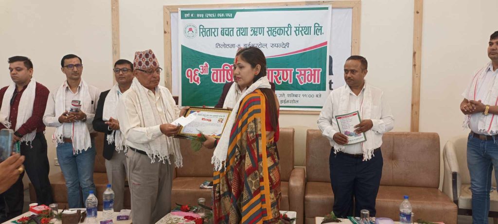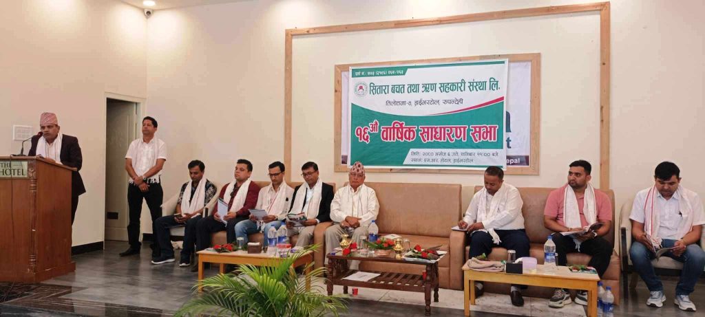 रुपन्देही । सितारा बचत तथा ऋण सहकारी संस्थाको १६औं साधारणसभा १६औं साधारणसभा शनिबार बुटवलमा सम्पन्न भएको छ । साधारण सभाको उदघाटन संस्थाका संस्थापन अध्यक्ष राम बहादुर खडकाले गर्नु भयो।