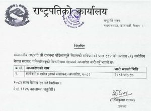 काठमाडाैं – राष्ट्रपति रामचन्द्र पौडेललेसार्वजनिक खरिदसम्बन्धी अध्यादेश जारी गरेका छन्।